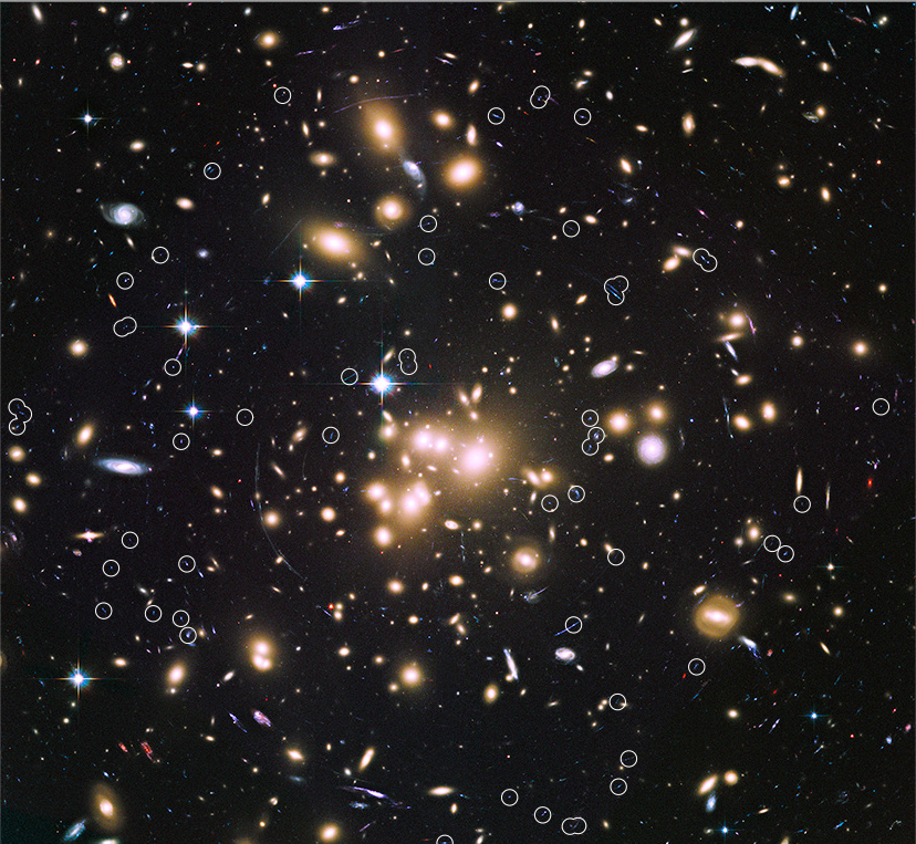 Para encontrar estas galáxias, o telescópio espacial tirou partido do fenômeno, dito de “lente gravitacional”, em que um gigantesco aglomerado de galáxias curva a luz que o atravessa, vinda de objetos mais distantes, aumentado a luminosidade desses objetos e esticando a sua imagem. Neste caso, a “lupa" cósmica foi um aglomerado designado Abell 1689, situado na constelação da Virgem a cerca de 2200 milhões de anos-luz de nós.